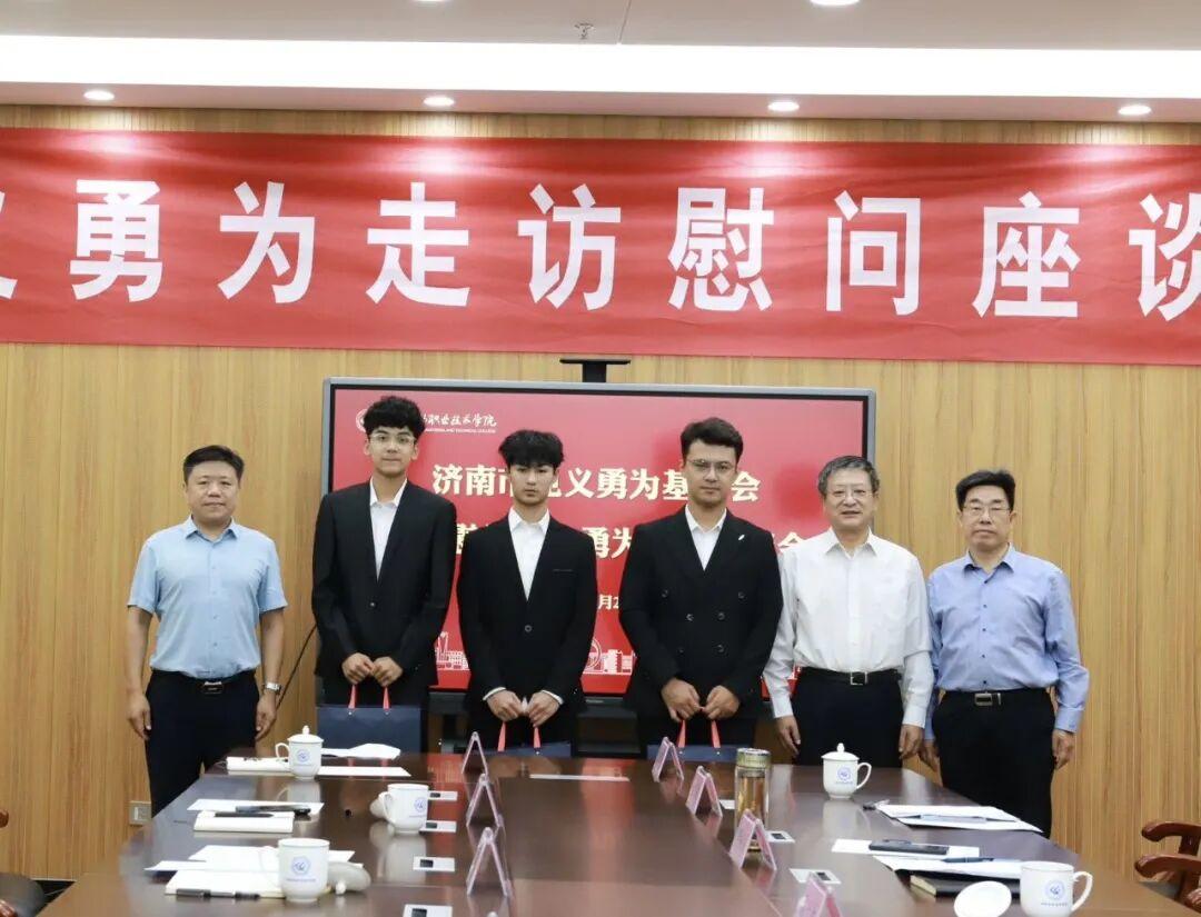 为大力弘扬社会正气,汇聚正能量,营造见义勇为的浓厚氛围,9月23日上午,济南市见义勇为基金会理事长雷天太带队,到长清大学城山东劳动职业技术学院走访慰问见义勇为人员。济南市委政法委一级巡视员谢圣仁,长清区委常委、政法委书记李培振,山东劳动职业技术学院党委书记孙众志,山东劳动职业技术学院党委副书记、院长赵耀培,济南市见义勇为基金会副理事长兼秘书长王献一,济南市委政法委基层社会治理处、市见义勇为基金会、区委政法委有关负责同志参加活动。